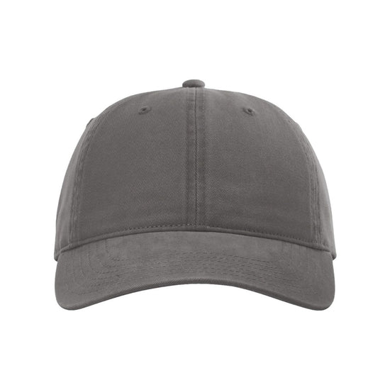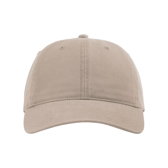 6 panel, low profile, unstructured 100% brushed canvas hat. It features an adjustable self-fabric slide closure.