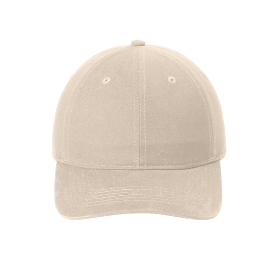 6 panel, low profile, unstructured 100% brushed cotton twill hat. It features an adjustable self-fabric slide closure