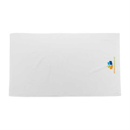 Elevated beach towel that is constructed of 100% cotton terry velour with dobby hem finish.